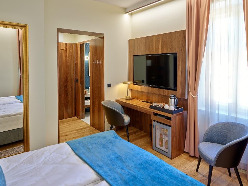 Boutique Hotel Dobrna**** znovu otevřel své brány v roce 2020 a nabízí svým hostům luxus v klidu, soukromí a nedotčené přírodě. Příběh Boutique Hotelu Dobrna se začal psát již v roce 1862. Jako součást tehdejšího lázeňského komplexu hostil významné osobnosti z celé Evropy. Při rekonstrukci hotelu jsme chtěli zůstat věrni bohaté tradici Terme Dobrna a dodržovat udržitelný rozvoj, proto jsme se rozhodli zachovat architektonické prvky této krásné budovy. Navíc jsme prolínáním přírodních materiálů, jako je dřevo, kámen a sklo, ještě více přiblížili přírodu našim hostům. Zachováno zůstalo nádherné schodiště, které vás zavede do třinácti exkluzivních pokojů Superior, Deluxe a Premium. Tyto pokoje svým jedinečným vybavením uspokojí i ten nejnáročnější vkus klientů. Světlo pronikající velkými klenutými okny přináší vzdušnost a naplňuje každý pokoj energií. Design koupelny, která odděluje sprchu od pokoje pouze skleněnou stěnou, potěší ty páry, které hledají blízkost. Soukromí je v tomto butikovém hotelu zaručeno. Pokoje mají možnost 1 přistýlky pro dítě do 13,99 let, dítě do 3,99 let bez lůžka (spí s rodiči), má pobyt zdarma. Stravování je formou bohatého bufetu (snídaně i večeře). Snídaně jsou v přízemí Boutique hotelu Dobrna, večeře v restauraci hotelu Vita****. Novoroční pobyt v období 29.12.2026 - 1.1.2027 - povinný příplatek za večeři ve výši 2 880 Kč/osoba a záloha na pobyt ve výši 2500 Kč/os. Útěk do zelené oázy Vynikající je nejen vybavení pokojů, ale také výjimečné prostředí samotného místa, které leží na úpatí hory Paški Kozjak. Výhled z pokojů na úchvatný 200 let starý park je podmanivý a vybízí k procházce mezi mohutnými stromy, k nalezení stínu a vlastního místa pro zklidnění myšlenek. Můžete si také vybrat z aktivit, jako je cyklistika, pěší turistika nebo tenis. Svou stopu ve vás jistě zanechá i bohatá historie lázní s termálním pramenem, který byl objeven již v roce 1403. Ve čtyřhvězdičkovém Boutique Hotelu Dobrna si můžete vybrat z celé řady pobytových balíčků. Ať už si Boutique Hotel Dobrna vyberete pro romantický víkend ve dvou, wellness hýčkání nebo jen pro ústup do soukromí, dovolená bude jedinečným butikovým zážitkem a nezapomenutelným příběhem, o který se budete chtít podělit. Pro dokonalou relaxaci a hýčkání si hosté mohou pronajmout soukromou saunu ve Vip Sauna Parku nebo si vybrat z široké nabídky masáží, rituálů a ošetření obličeje a těla v Masážním centru LaVita. Na místě se platí pobytová taxa ve výši 2,50 Eur/os./noc a jednorázové přihlášení 2,50 Eur/os.