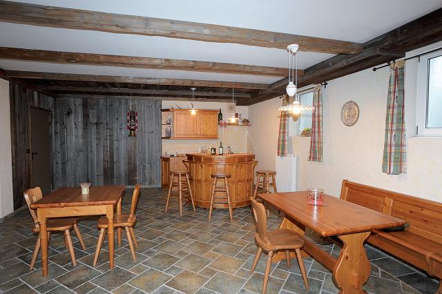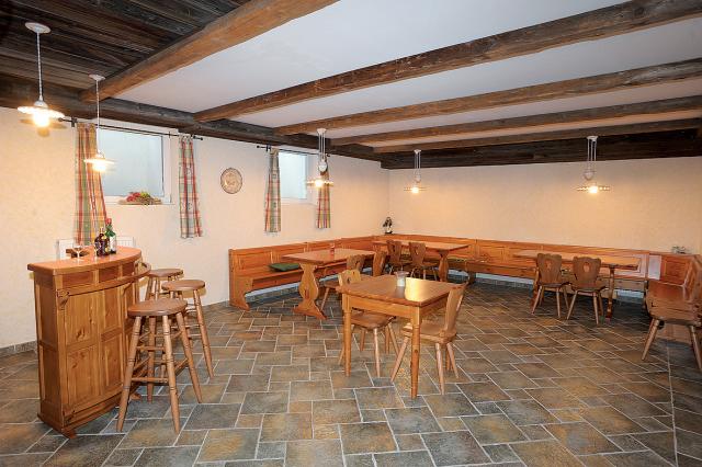 | typická společenská místnost, úschovna lyží a lyžařských bot,