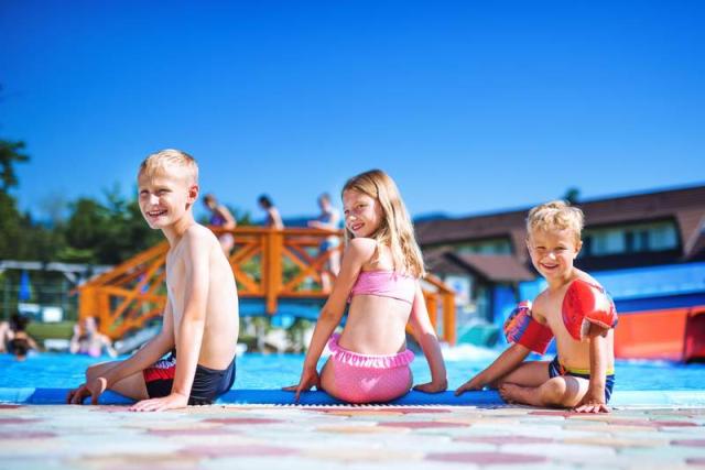 terapeutický bazén) i venkovní bazén s termální vodou, tobogánem (v