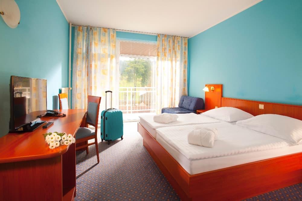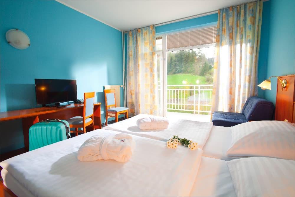 | Balkón směrem do parku/zeleně, Balkon směr na termály, WC, televize, telefon, koupelna, přistýlka na vyžádání |