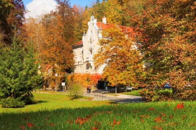 Stravování zajišťuje restaurace Steak & Burger přímo ve vile a restaurace v nedalekém Hotelu Vita (cca 50 m), kde hosté najdou také recepci, bazény s termální vodou, wellness centrum se saunami, masážemi a beauty procedurami i fitness. Novoroční pobyt v období 29.12.2026 - 1.1.2027 - povinný příplatek za večeři ve výši 2 880 Kč/osoba a záloha na pobyt ve výši 2500 Kč/os. Vila leží uprostřed lázeňského parku, který vybízí k odpočinku i procházkám. V areálu nechybí sportoviště, dětský bazén a hřiště, možnost zapůjčení kol nebo ekologických vozítek. Parkování je zdarma, domácí mazlíčci se neubytovávají. Vila Higiea je ideální volbou pro hosty, kteří hledají klidné prostředí, kvalitní ubytování a kompletní nabídku bazénů i wellness služeb v srdci Slovinska. Na místě se platí pobytová taxa 2,50 Eur/os./noc a jednorázové přihlášení 2,50 Eur/os./pobyt. Terme Dobrna Terme Dobrna - Nejstarší termální lázně ve SlovinskuTerme Dobrna jsou jedny z nejstarších a nejprestižnějších termálních lázní ve Slovinsku, jejichž historie sahá až do roku 1403. Nacházejí se v malebném prostředí severovýchodního Slovinska, přibližně 17 km od Celje. Díky své dlouhé tradici a moderním wellness službám patří mezi oblíbené destinace pro léčebné pobyty, relaxaci i aktivní odpočinek. Termální voda a léčebné účinkyPřirozeně alkalická vápenato-hořečnatá hydrogenuhličitanová voda o teplotě přibližně 35-36,5 °C patří mezi uznané přírodní léčivé zdroje Slovinska. Využívá se zde již od roku 1403 a tradičně pomáhá při potížích pohybového aparátu a revmatismu, dále u gynekologických a urologických obtíží i vybraných cévních a neurologických problémů. Hosté ji využívají v bazénech a vířivkách i formou řízené pitné kúry. Wellness a lázeňské službyTerme Dobrna nabízí širokou škálu wellness procedur a moderních