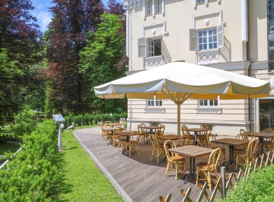 Stravování zajišťuje restaurace Steak & Burger přímo ve vile a restaurace v nedalekém Hotelu Vita (cca 50 m), kde hosté najdou také recepci, bazény s termální vodou, wellness centrum se saunami, masážemi a beauty procedurami i fitness. Novoroční pobyt v období 29.12.2026 - 1.1.2027 - povinný příplatek za večeři ve výši 2 880 Kč/osoba a záloha na pobyt ve výši 2500 Kč/os. Vila leží uprostřed lázeňského parku, který vybízí k odpočinku i procházkám. V areálu nechybí sportoviště, dětský bazén a hřiště, možnost zapůjčení kol nebo ekologických vozítek. Parkování je zdarma, domácí mazlíčci se neubytovávají. Vila Higiea je ideální volbou pro hosty, kteří hledají klidné prostředí, kvalitní ubytování a kompletní nabídku bazénů i wellness služeb v srdci Slovinska. Na místě se platí pobytová taxa 2,50 Eur/os./noc a jednorázové přihlášení 2,50 Eur/os./pobyt. Terme Dobrna Terme Dobrna - Nejstarší termální lázně ve SlovinskuTerme Dobrna jsou jedny z nejstarších a nejprestižnějších termálních lázní ve Slovinsku, jejichž historie sahá až do roku 1403. Nacházejí se v malebném prostředí severovýchodního Slovinska, přibližně 17 km od Celje. Díky své dlouhé tradici a moderním wellness službám patří mezi oblíbené destinace pro léčebné pobyty, relaxaci i aktivní odpočinek. Termální voda a léčebné účinkyPřirozeně alkalická vápenato-hořečnatá hydrogenuhličitanová voda o teplotě přibližně 35-36,5 °C patří mezi uznané přírodní léčivé zdroje Slovinska. Využívá se zde již od roku 1403 a tradičně pomáhá při potížích pohybového aparátu a revmatismu, dále u gynekologických a urologických obtíží i vybraných cévních a neurologických problémů. Hosté ji využívají v bazénech a vířivkách i formou řízené pitné kúry. Wellness a lázeňské službyTerme Dobrna nabízí širokou škálu wellness procedur a moderních